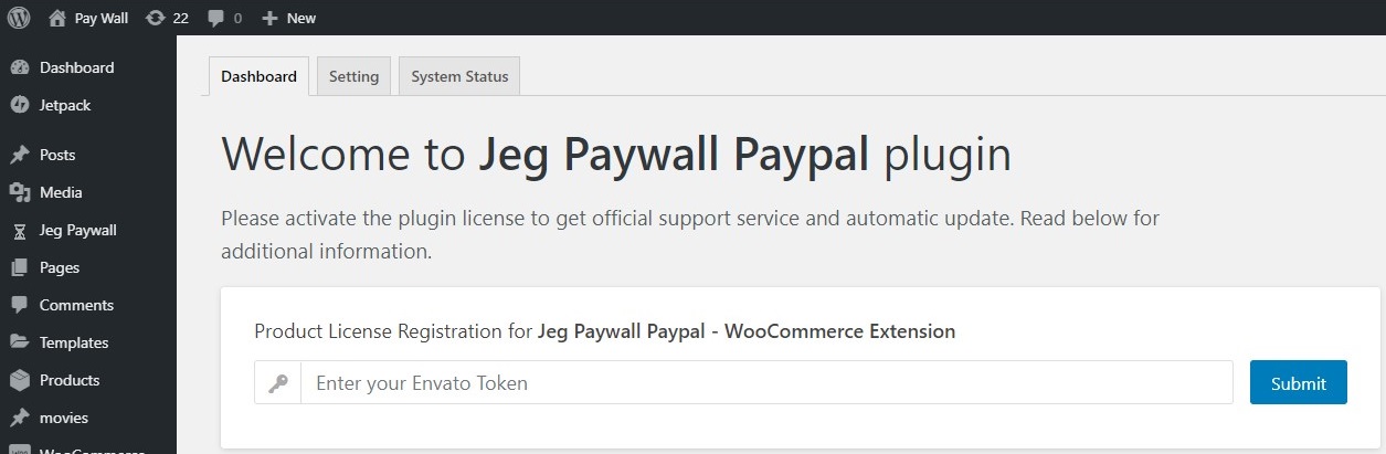 You can easily register and activate your plugin license in just few minutes. By activating your plugin license, you will receive all benefits from Jeg Paywall Paypal – Woocommerce Extensions such as plugin updates, premium support, and unlock all other features.