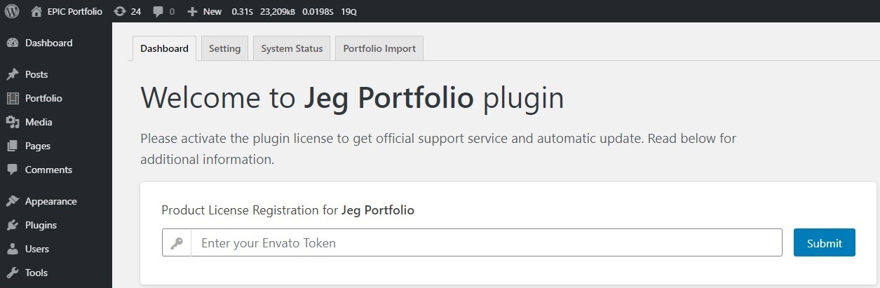You can easily register and activate your plugin license in just a few minutes. By activating your plugin license, you will receive all benefits from Jeg Portfolio such as plugin updates, premium support, and unlock all other features.