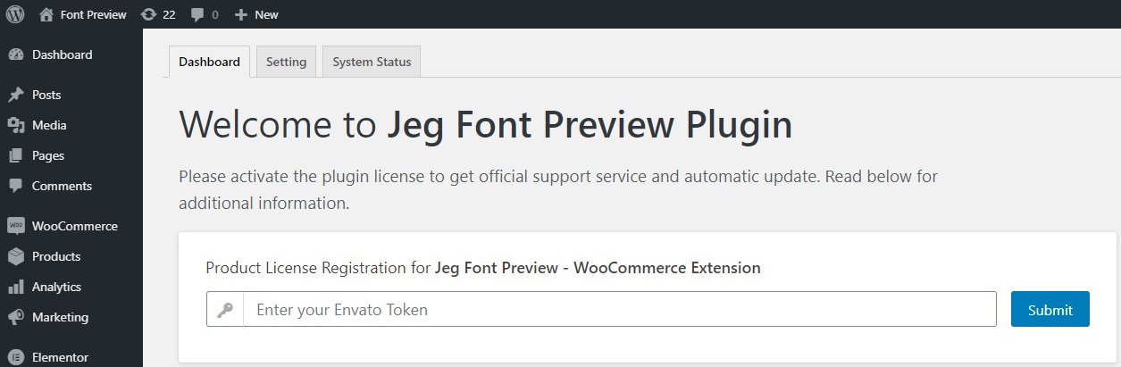 You can easily register and activate your plugin license in just a few minutes. By activating your plugin license, you will receive all benefits from Jeg Font Preview – WooCommerce Extension such as plugin updates, premium support, and unlock all other features.