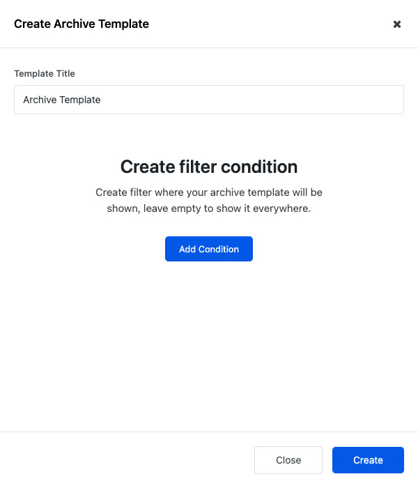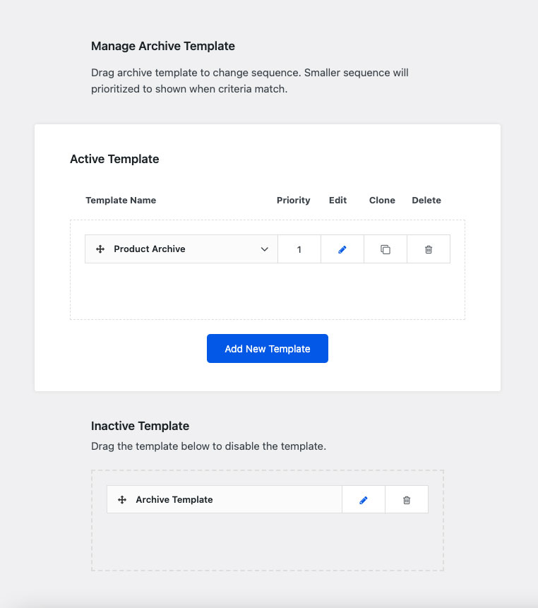 You can add multiple archive templates. Upon visiting the site, the archive templates will be looped from the highest priority (top) to the lowest priority (bottom).