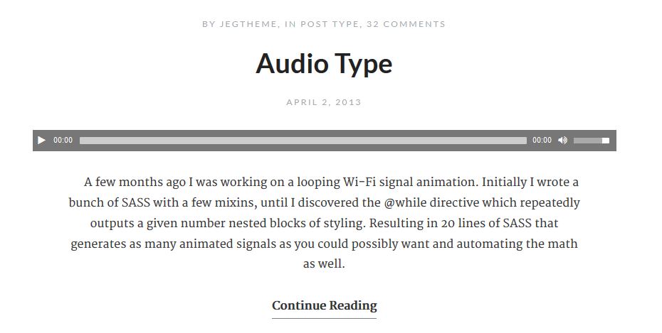 This themes provide 10 psot format that you can choose base on what kind of post you going to use.