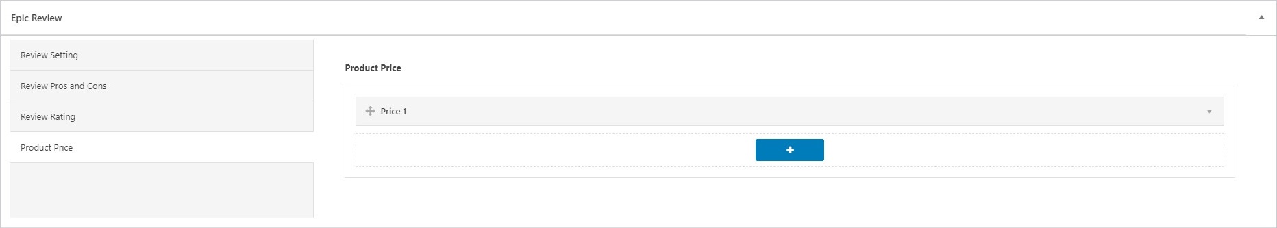 If you want to show the price of the product you’re reviewing, you can add the product price here. You can add a new price by clicking on the plus button.