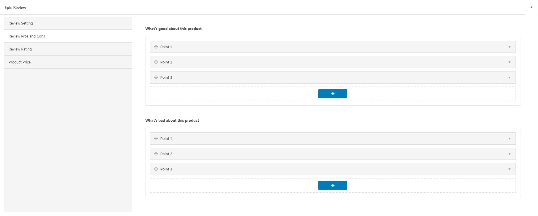 Let your website visitors know what’s not good about the product you reviewing. Click on the plus button to add as many points you need.