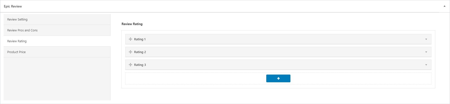 This is the rating value of your reviews, which will be set to star, point or percentage depends on the option you chose in Review Setting previously. You can add a new rating by clicking on the plus button.