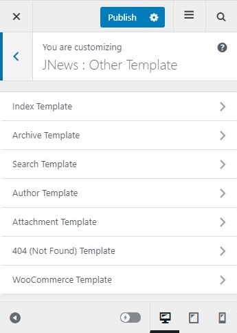You can set the custom archive template for another archive template (Author Template, Archive Template). Firstly you need to go to Customizer > JNews: Other Template. In there, you will notice a list of other archive template. Please check this image below for detail: