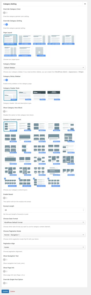 The following options list below will be activated when you enable Override This Category Setting option. You can change the category page template using these settings.
