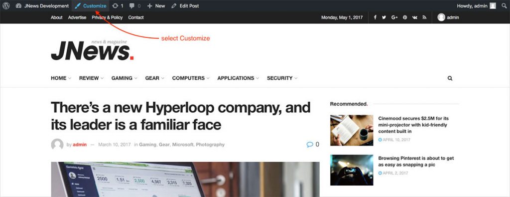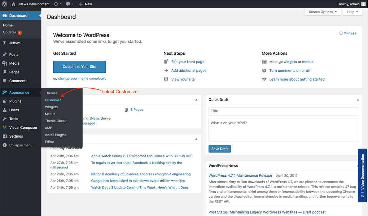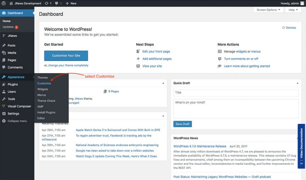 You can easily access customizer panel on your website. Please check the following information below to access customizer panel quickly :