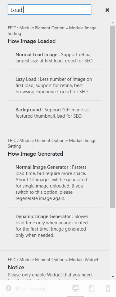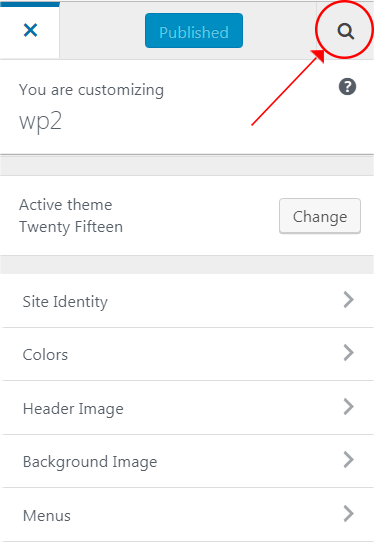 We add live search feature on our Customizer. You can easily search an option without navigate to the option tab anymore. You just need to click the search icon on the right side of the box and then you can start typing the option that you need quickly.