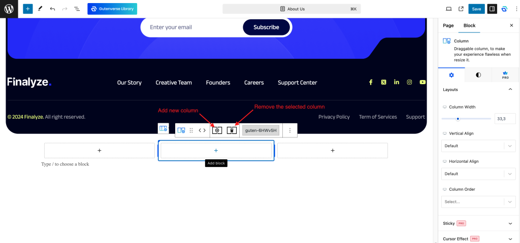 You can add and remove a column by clicking on the column and clicking either the Add Column or Delete Column icons (please refer to the image below).