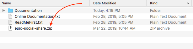 After downloading Epic Social Share package from CodeCanyon you need to extract those files, and then you will find a zip file with name epic-social-share.zip. This is the main file of Epic Social Share.