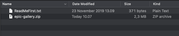 - After that browse to find the epic-gallery.zip file (look at the image above) and unzip the file.