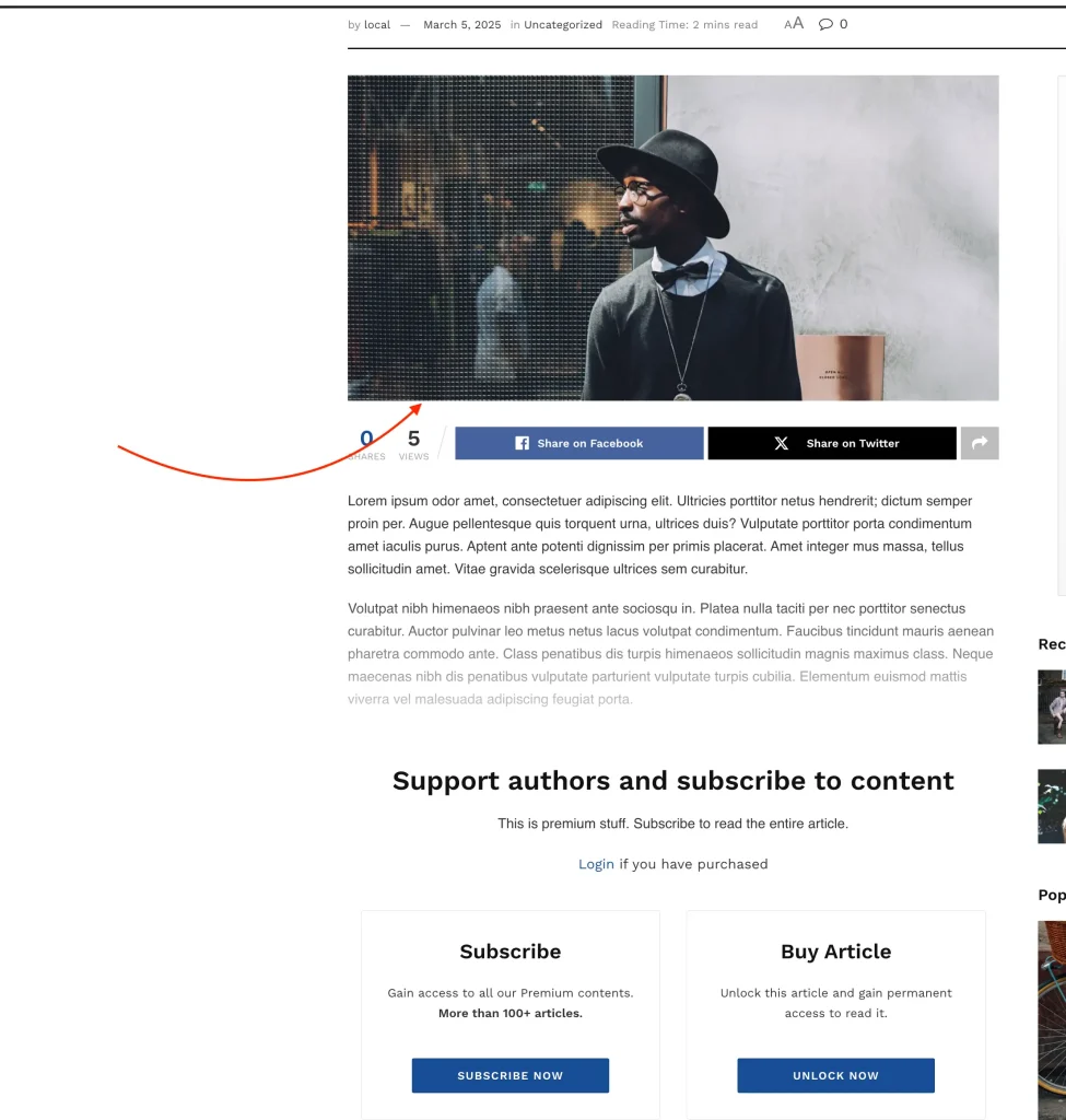 For free users, the single post page will only display the Featured Image.