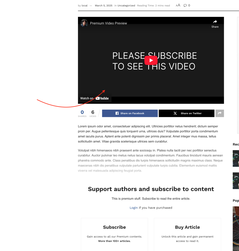 If you enable this option, all featured videos on premium posts will only be viewable by subscribed users or those who have unlocked the premium post.