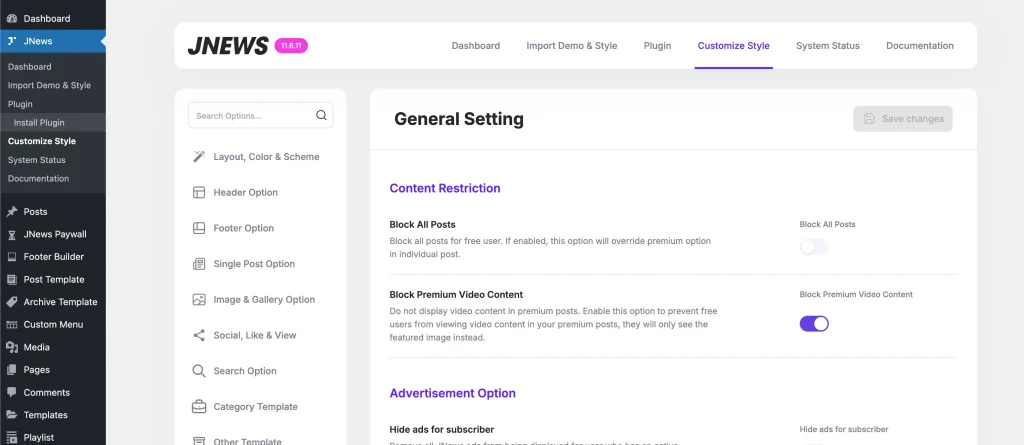 In JNews Paywall version 11.6.5, we introduced the Block Premium Video Content option in JNews > Customize Style > Paywall Option > General Setting, which allows you to restrict access to premium post videos.