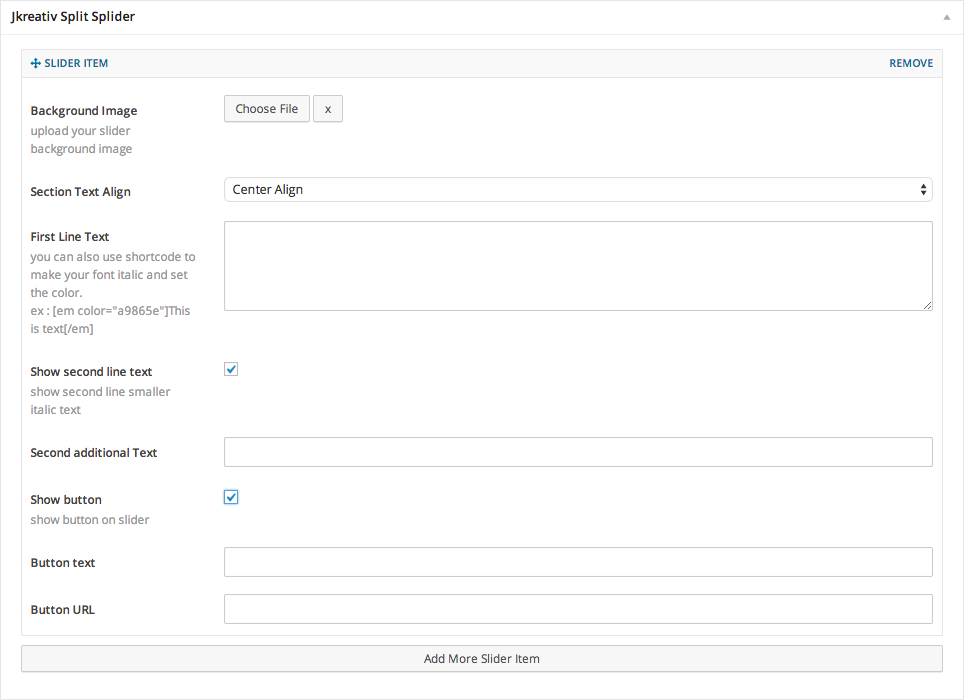 You can add unlimited Slider Item that has individual options.Global Options Explanation :- Fullscreen Parallax Slider : Enable this option if you want to use fullscreen mode.