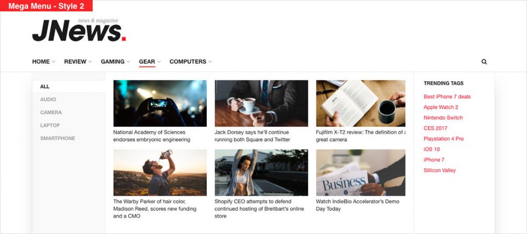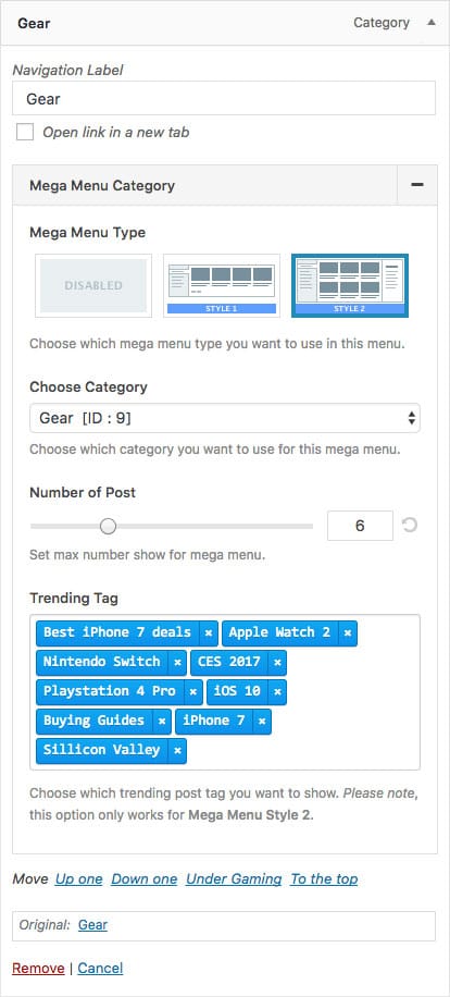 Choose which post tag that you want set as trending tag for the current mega menu. Please note, this option will works only for Mega Menu Style 2.