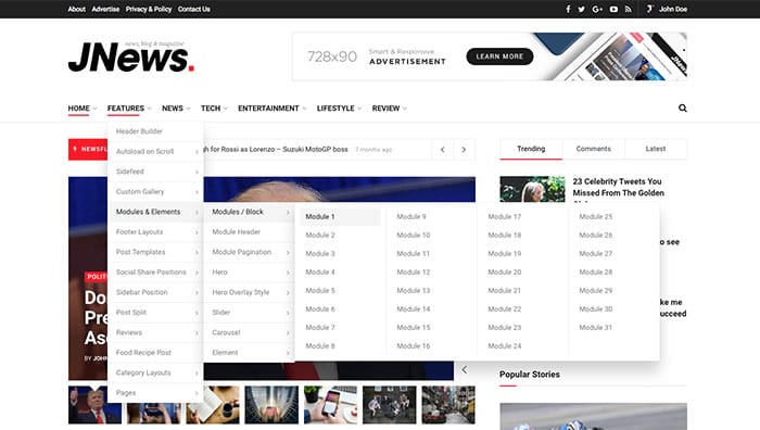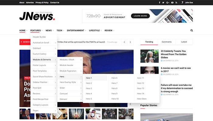 With JNews, you are provided 4 different locations of menu that you can use on your website.