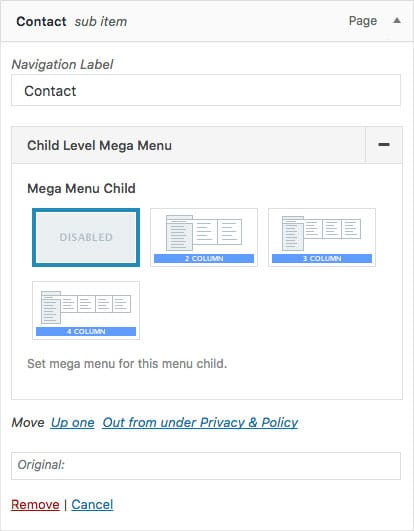As you can see on the image above, there is Child Level Mega Menu tab on menu item panel. Please check the following explanation below about child level mega menu :