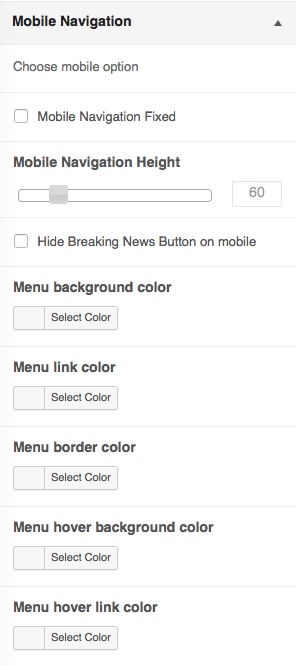 From this block of customize option you have option to change style of mobile navigation. or change height of your navigation (incase your mobile logo is way to big). or change mobile navigation to be fixed (following when scrolling) or stay on top (mobile navigation)