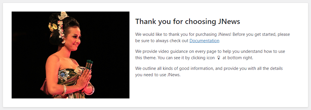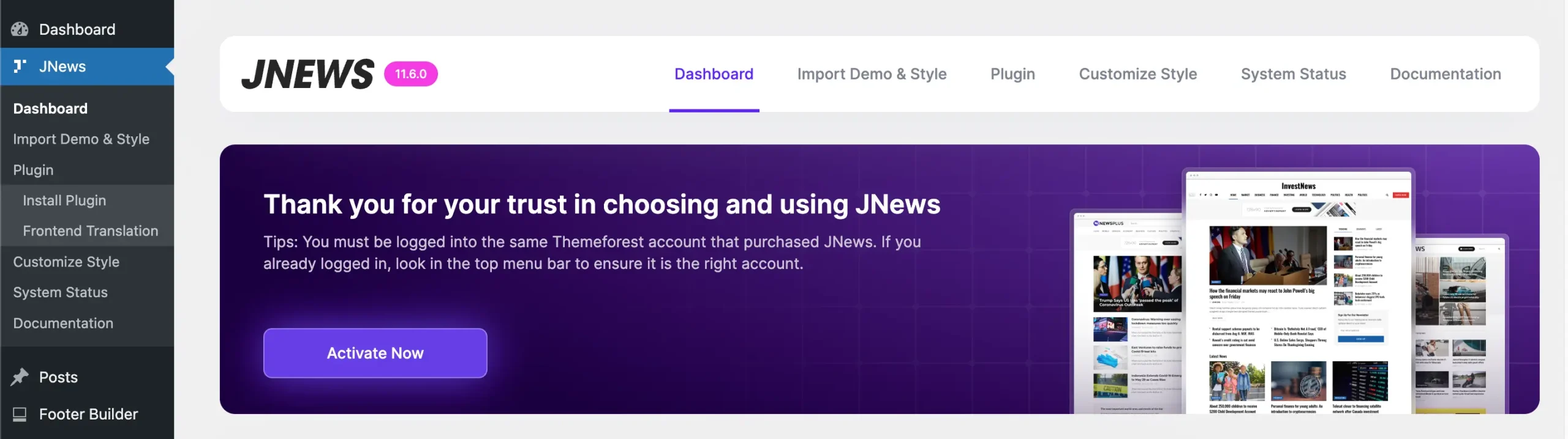 You also can activate the theme from `Dashboard > JNews > Dashboard`.