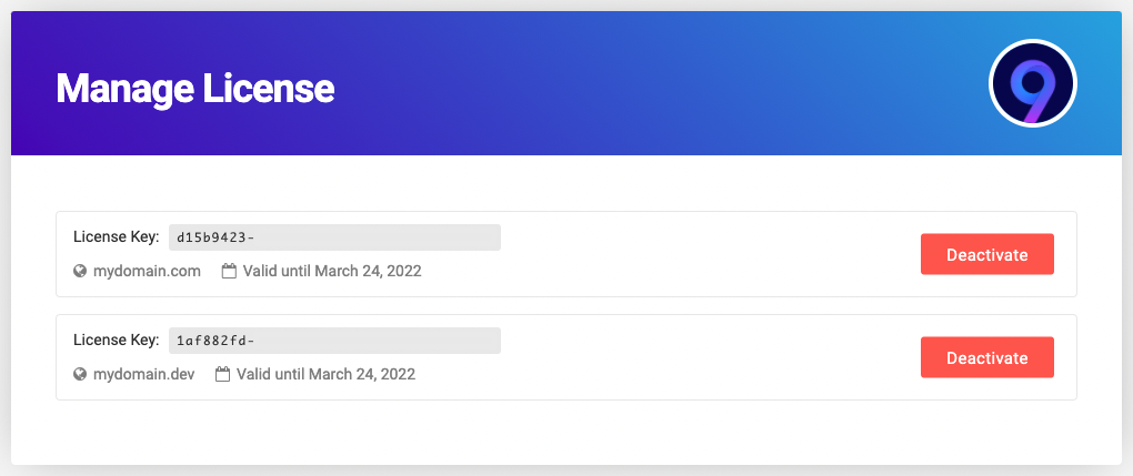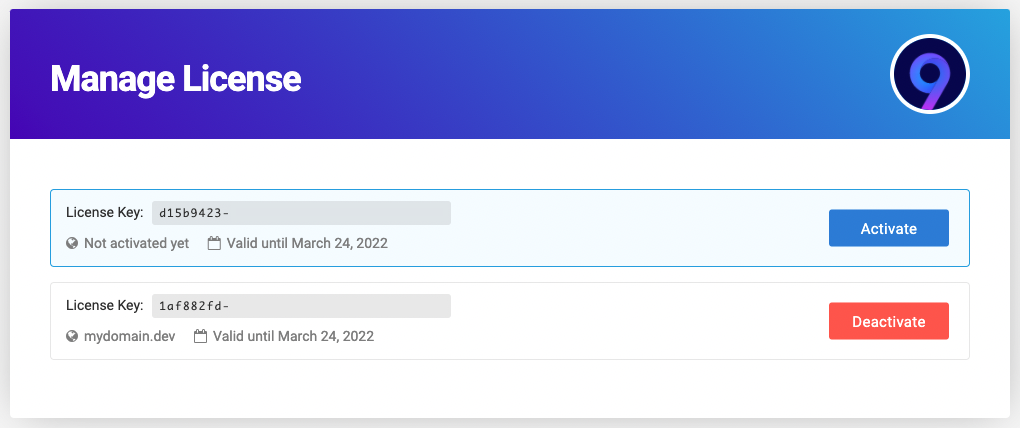 If you have bought more than 1 license, you will be prompted with a choice to choose which license you wish to use to activate the theme.