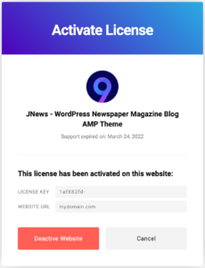 You can easily activate your theme license with a few clicks. Activating your theme license will grant you all benefits offered by JNews such as automatic theme updates, import content & style, and unlock all features available within the theme.