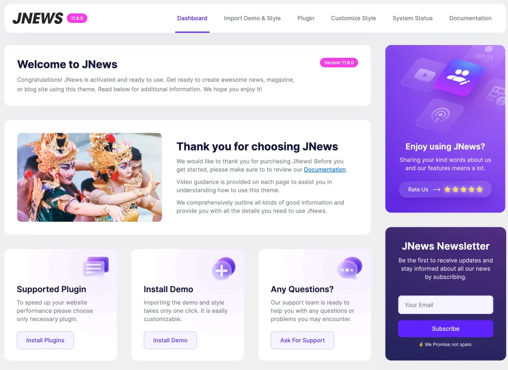 Now with the theme activated, you can enjoy all the benefit JNews offer. Welcome to JNews Community.