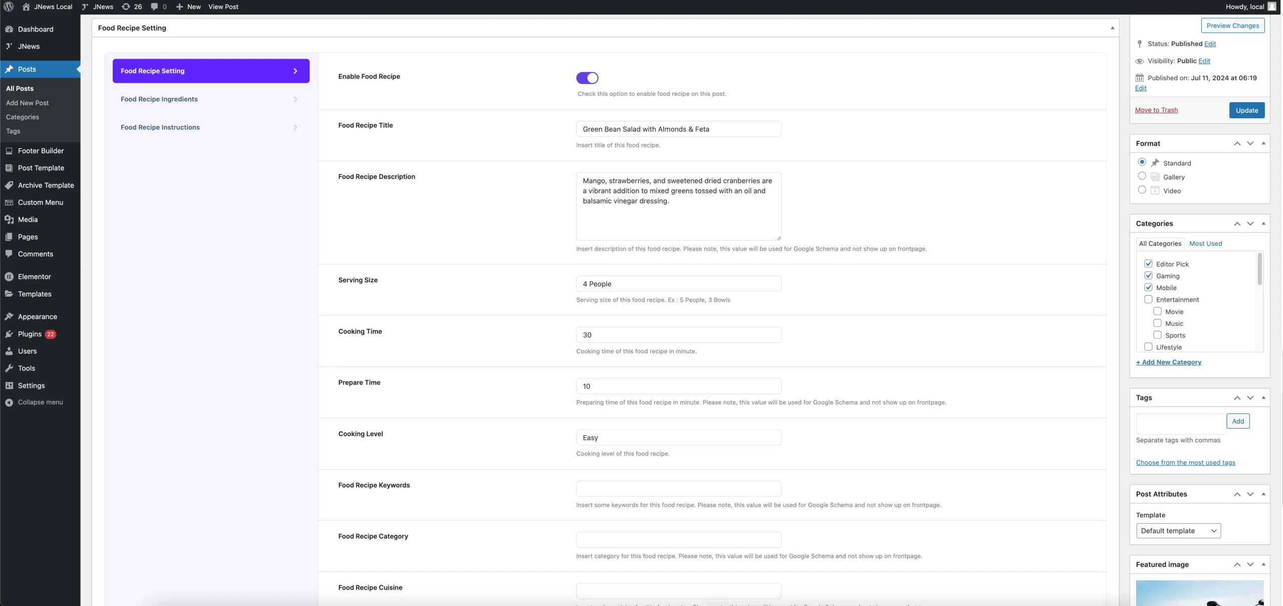 In this part, we will guide you how to use food recipe feature with JNews that only take a few minute.