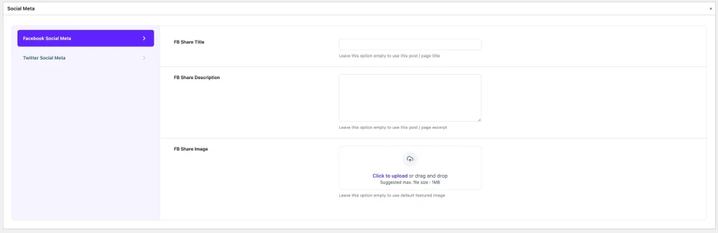 As you can see on the image above, you will notice there are several options that you need to set up especially for Facebook.- Facebook Share Title