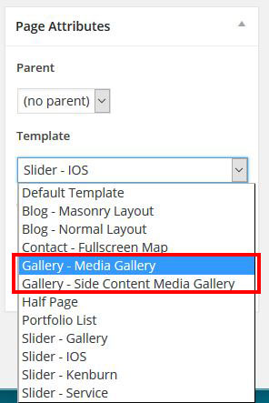 To create Gallery Page that using Media Gallery Template (Side Content), just go to Pages→Add New