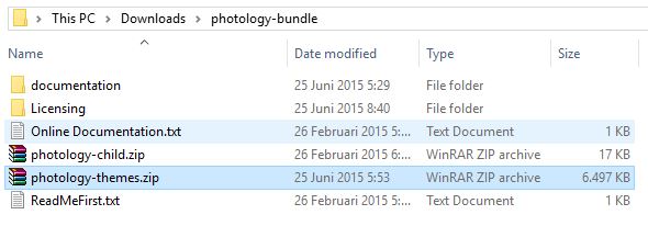 After downloading Photology package from Themeforest you need to extract those file, and then you will find zip file named photology-themes.zip. This is main file of Photology theme that will be uploaded.