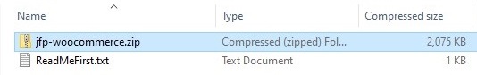 - After that, browse to find the new version of the jfp-woocommerce.zip file (look at the image above) and unzip the file.