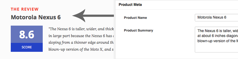 This metabox content will show on the review box on post. On product summary, you can write short content of sumarry of your product review.