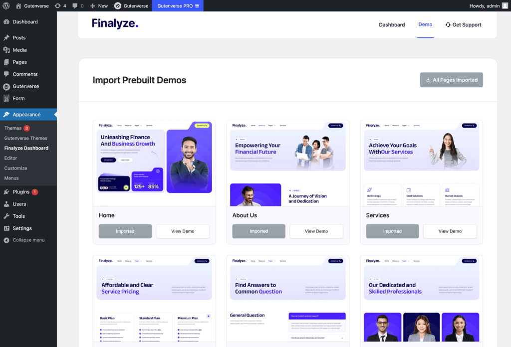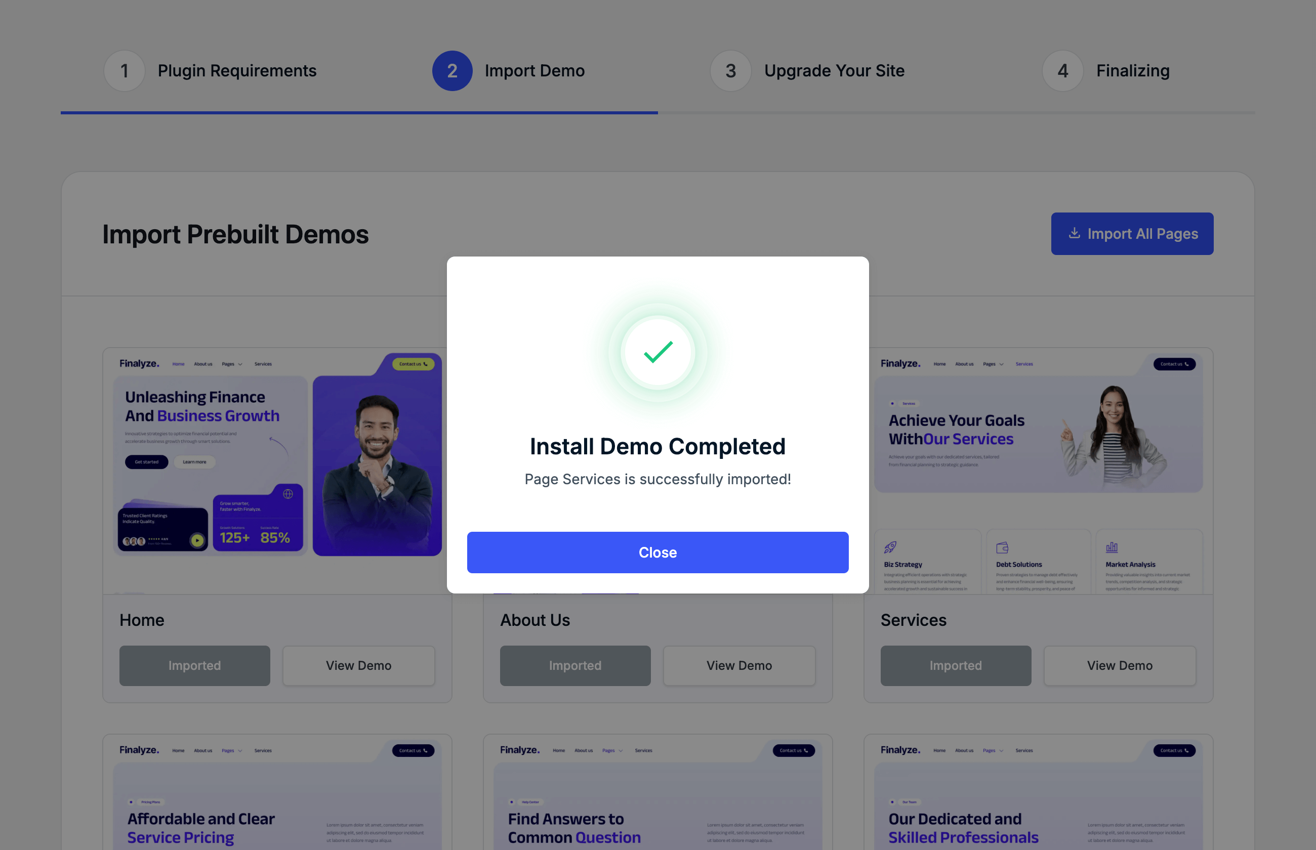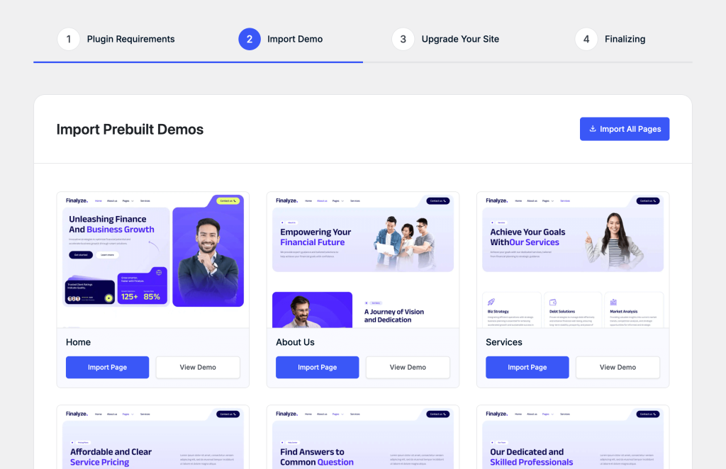 In this step, you have the option to select which page template you would like to import based on your preferences and needs.