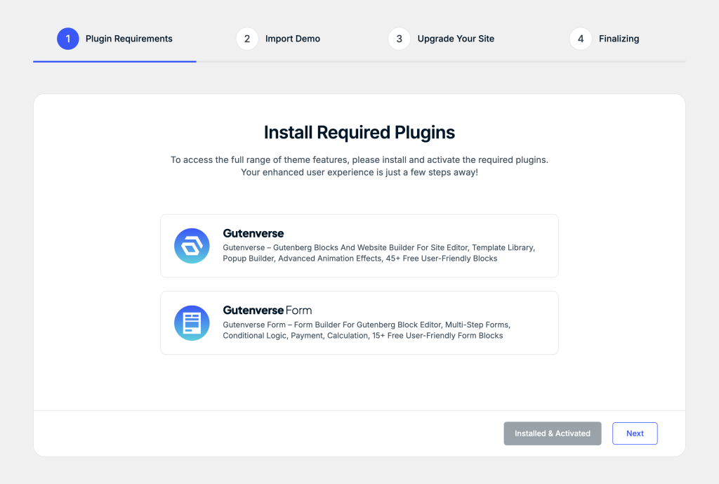 Once you’ve installed the required plugins, click the Next button to proceed to the next step.