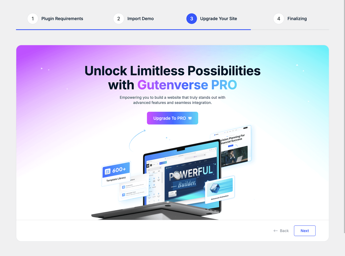 After you’ve finished importing your selected page templates, click the Next button to proceed.
