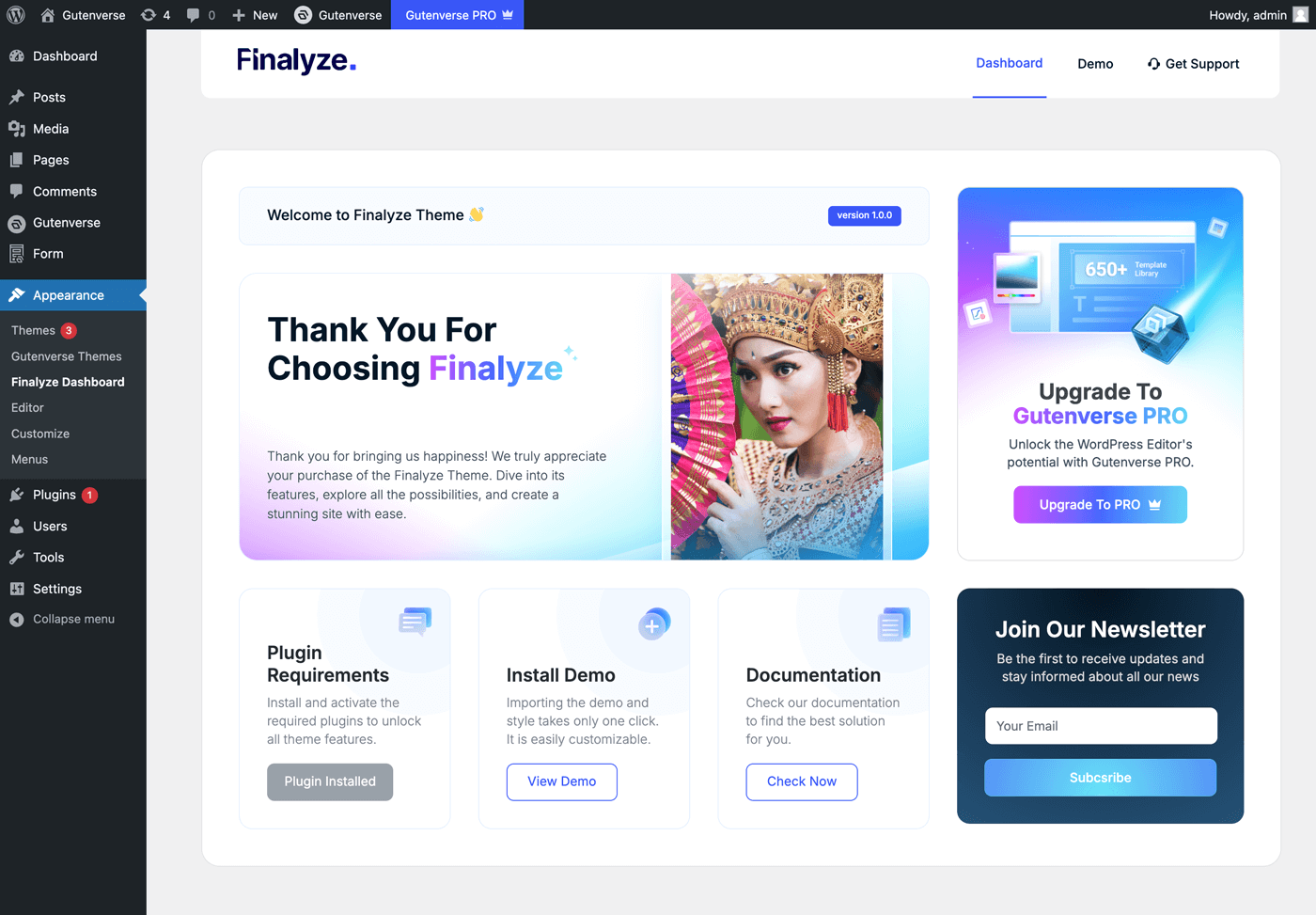 The next additional step is to set up a form action, which is necessary if your FSE theme utilizes the Gutenverse Form plugin or includes any contact forms. This step ensures that your forms function correctly and can handle submissions as intended.
