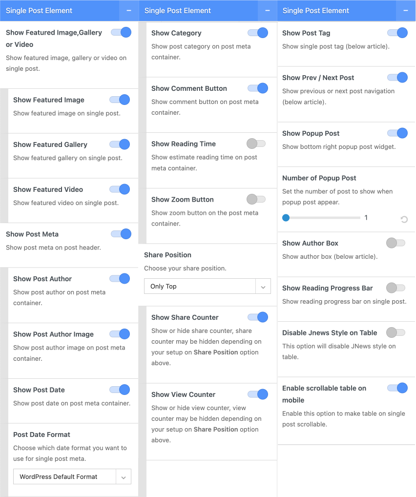 On JNews : Single Post Option, there are several section options that you will find :