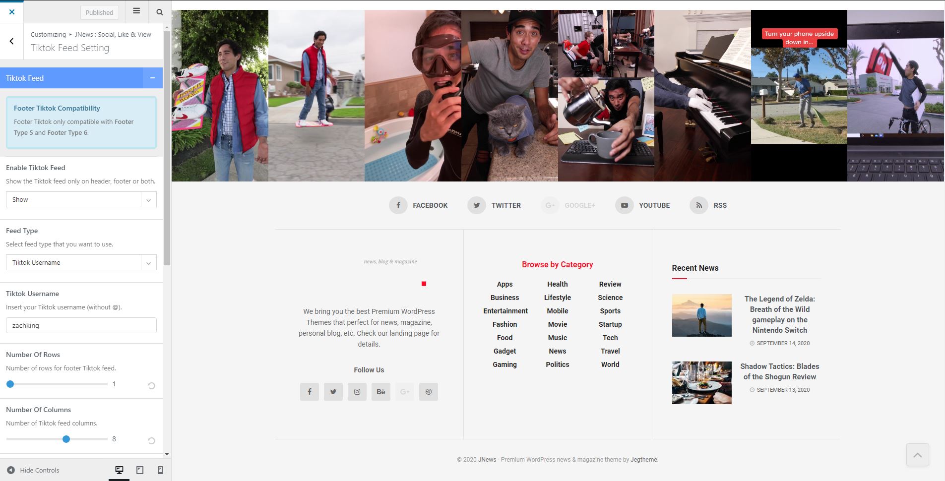 Now with JNews, you can even show your latest TikTok feed on Post, Page, Widget, and Header in your website. In this part, we will guide you how to show your Instagram feed on the website’s with JNews TikTok Feed.