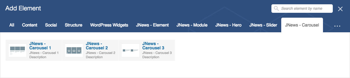 As you can see on the image below, on JNews – Carousel group tab we provide several Visual Composer element that you can use.