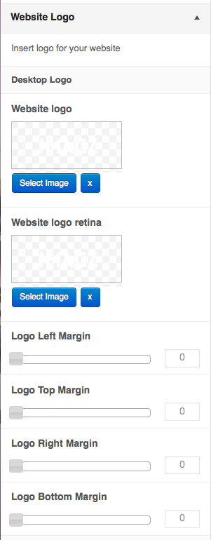 From CustomizerWebsite Logo, you able to modify your Website (dekstop) logo, Mobile Logo, also Favicon. You can also modify margin for logo. Please don’t forget to upload retina size of your logo.