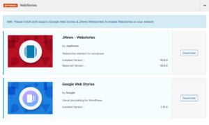 to activate the webstories on your website you need to have the following plugins installed and active, you can easily install and activate these plugins from JNews Dashboard → Install Plugin: