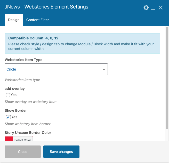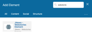 2.2. JNews – Webstories , you need to install this plugin in order to create webstories element, webstories element is an element where you can display your web story post